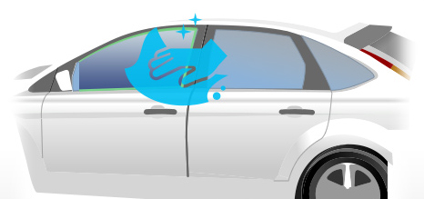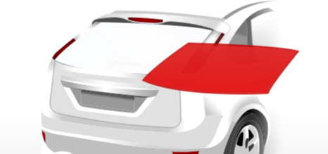 Prije zamjene zadnjeg stakla, pokrivamo područja označena na slici kako bi zaštitili karoseriju i unutrašnjost vozila.